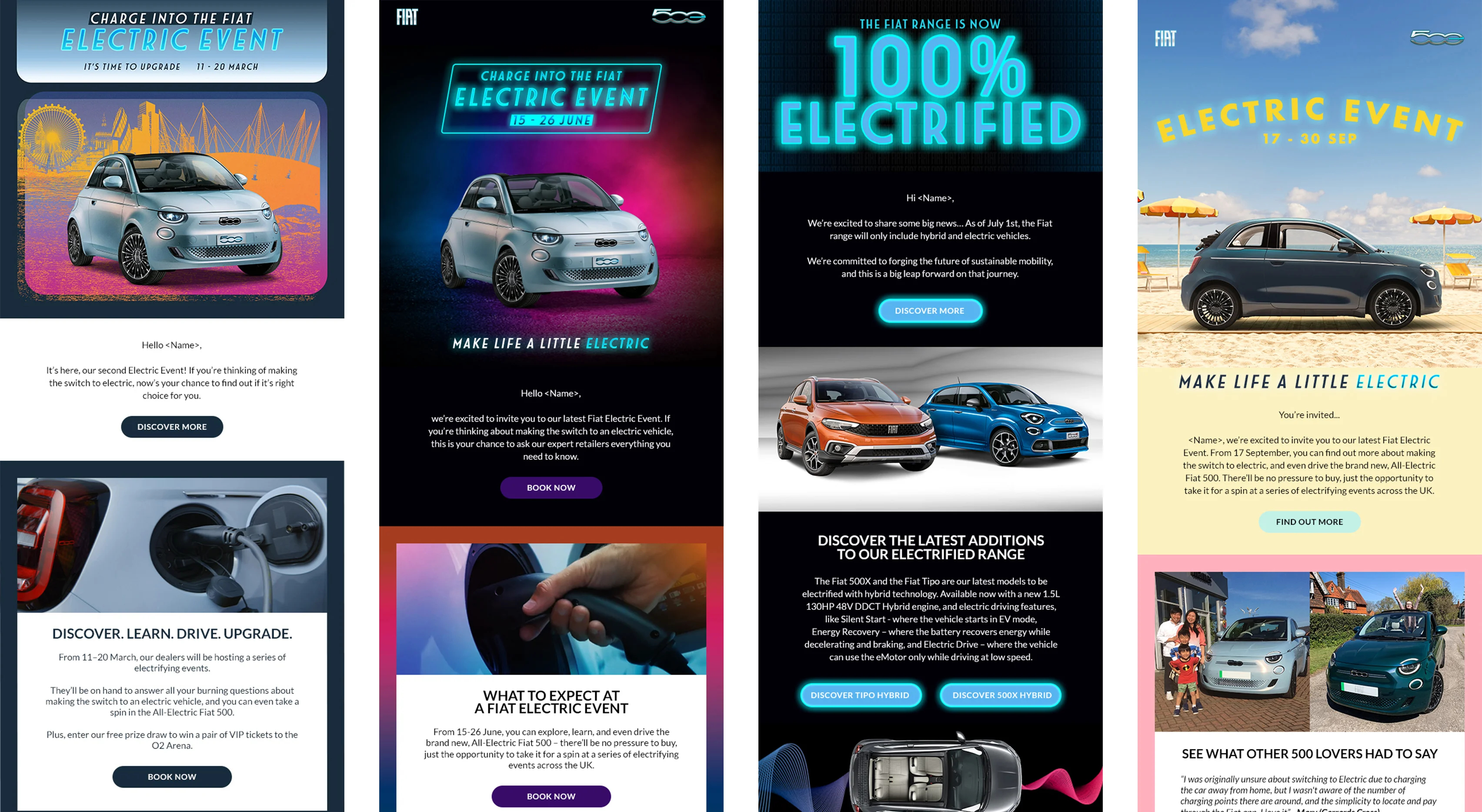 Riding off the back of the awareness generated by the launch campaign, these follow-ups served to draw people further into the world of Fiat electric vehicles with the ultimate goat of convincing people to book a test drive.