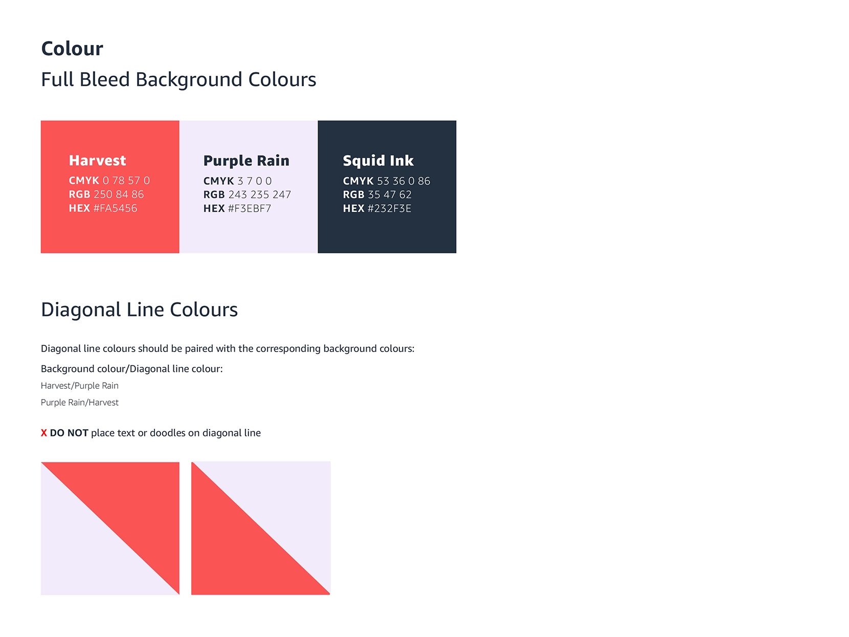 The brand book contained all the information necessary on how to use the brand, how to style assets and products, and how and where to use the logo and colours correctly.