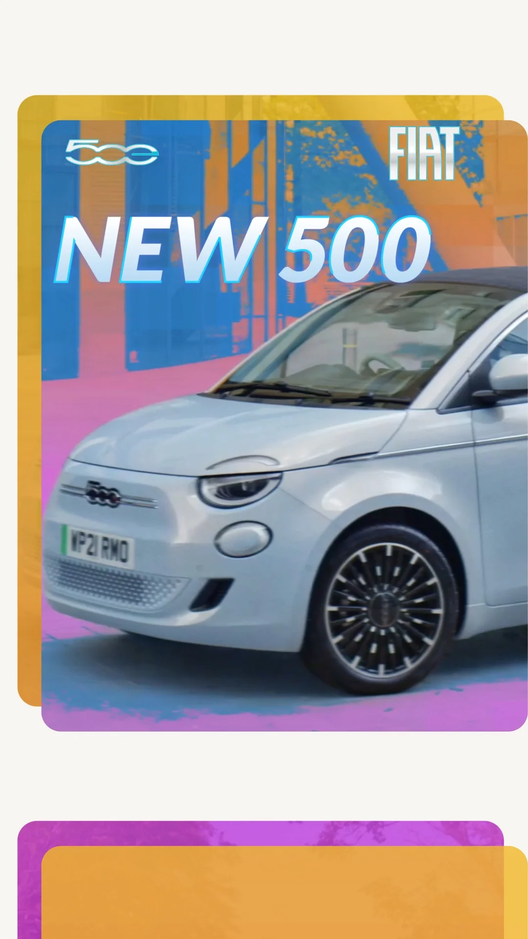 Instead of simply cutting down and re-formatting the TVC for social formats, we wanted to capture the dynamic and fun spirit of the 500e. We spliced clips from the TVC together into animated film reels inspired by the 500's neo-retro aesthetic and the 500e's marriage of vintage pedigree with cutting edge technology.